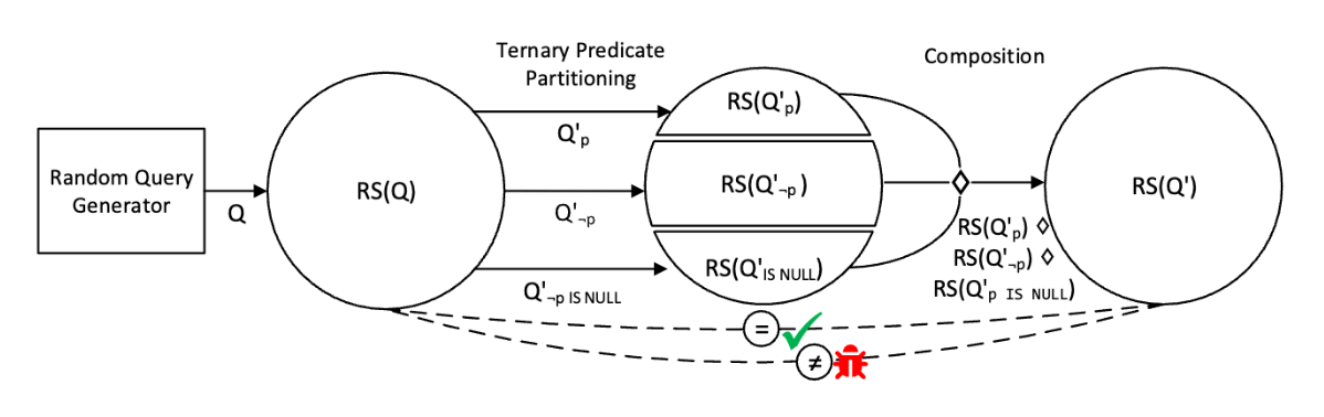 TLP 测试方法全称为 Ternary Logic Partitioning(三元逻辑分区),该方法的详细介绍可以参考论文——Finding bugs in database systems via query partitioning。